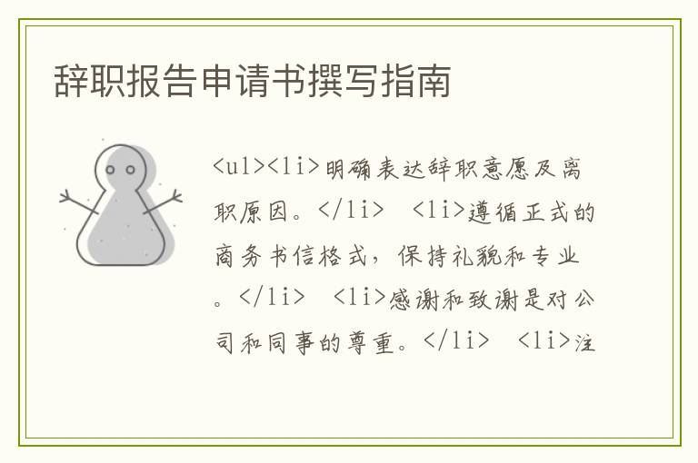 辞职报告申请书是员工离职时的重要文件,它体现了员工的职业素养和公司对员工的尊重。撰写辞职报告时,应明确表达辞职意愿、离职原因及离职日期,同时保持礼貌和专业的态度。